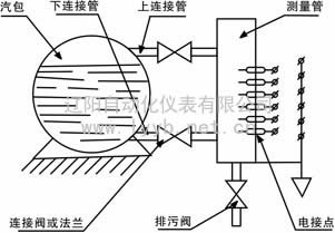 由于水和汽的導(dǎo)電性能差異很大。以發(fā)電廠汽包為例,在溫度350℃以下時,純水的導(dǎo)電率<106歐姆/厘米,而蒸汽的電阻率>108歐姆/厘米。測量筒的作用就是將水位的變化通過接點電阻的變化取得信號,依照“數(shù)”的關(guān)系饋送至二次表。