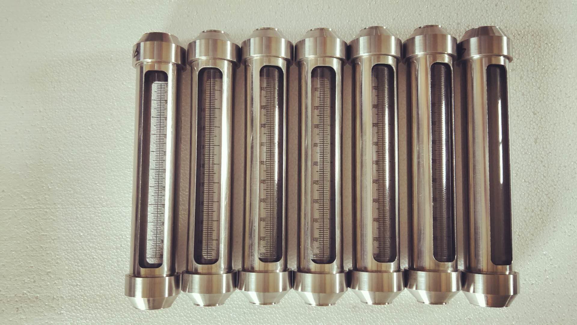 流量標定柱 一、概述 流量標定柱廣泛應用于計量泵和加藥裝置的流量標定方面,可以對計量泵輸出的流量進行準確標定。流量標定柱又稱作流量標定管,標定柱,標定管,主要材質:有機玻璃,透明PVC和不銹鋼;連接方式有內螺紋、外螺紋、法蘭。 二、流量標定柱的選型 流量標定柱的選型是根據泵的使用流量和標定時間要求決定的。比如,泵的流量是60L/h,客戶需要標定0.5-1min的流量,那么每分鐘的計算流量應該是60L÷60=1L,那么可以選擇使用容積為1L的標定柱。 三、流量標定柱使用方法 使用時,首先把標定柱里注入介質,介質的液面于標定柱的最大刻度一致。然后關閉其他進口閥門,打開標定柱與泵之間的閥門,使泵只從標定柱里抽取介質,然后開泵計時,仔細查看在規定時間內標定柱內液體減少的容積數,然后與理論容積數比較,從而根據對比分析出泵在工作時是否計量精確,然后根據情況調節泵的精度。 我公司生產的流量標定柱可以根據客戶的要求制作不同容積的型號,連接方式也可以根據客戶的要求定做,現在生產的標定柱主要有UPVC、有機玻璃和不銹鋼三種材質,可以滿足大多數耐腐蝕要求。 以下是我公司生產的常規型號以及安裝尺寸,僅供參考 型 號 容量(ml) 直徑(mm) 高度(mm) 常規連接方式(可按要求做) JBD-50 50 20 330 Rc 1/2″ JBD-100 100 32 300 Rc 1/2″ JBD-200 200 40 330 Rc 1/2″ JBD-250 250 50 300 Rc 1/2″ JBD-300 300 50 340 Rc 1/2″ JBD-400 400 50 420 Rc 1/2″ JBD-500 500 63 350 Rc1/2″ JBD-600 600 63 390 Rc1/2″ JBD-800 800 63 470 Rc1/2″ JBD-1000 1000 63(75) 550(400) Rc1/2″ JBD-1500 1500 75(90) 550(430) Rc3/4″ JBD-2000 2000 90 550 Rc3/4″ JBD-3000 3000 110(90) 550(750) Rc1″ JBD-4000 4000 110 680 DN25 JBD-5000 5000 110 820 DN25 JBD-6000 6000 110 955 DN32 JBD-8000 8000 110 1200 DN40 JBD-10000 10000 160(110) DN40 JBD-15000 15000 160 DN40 JBD-20000 20000 160 DN50 JBD-25000 25000 160 DN50 JBD-30000 30000 160 DN50 訂貨須知 1、 流量標定柱的容積 2、 流量標定柱的材質,連接方式,形式及尺寸 3、輸送的介質、溫度